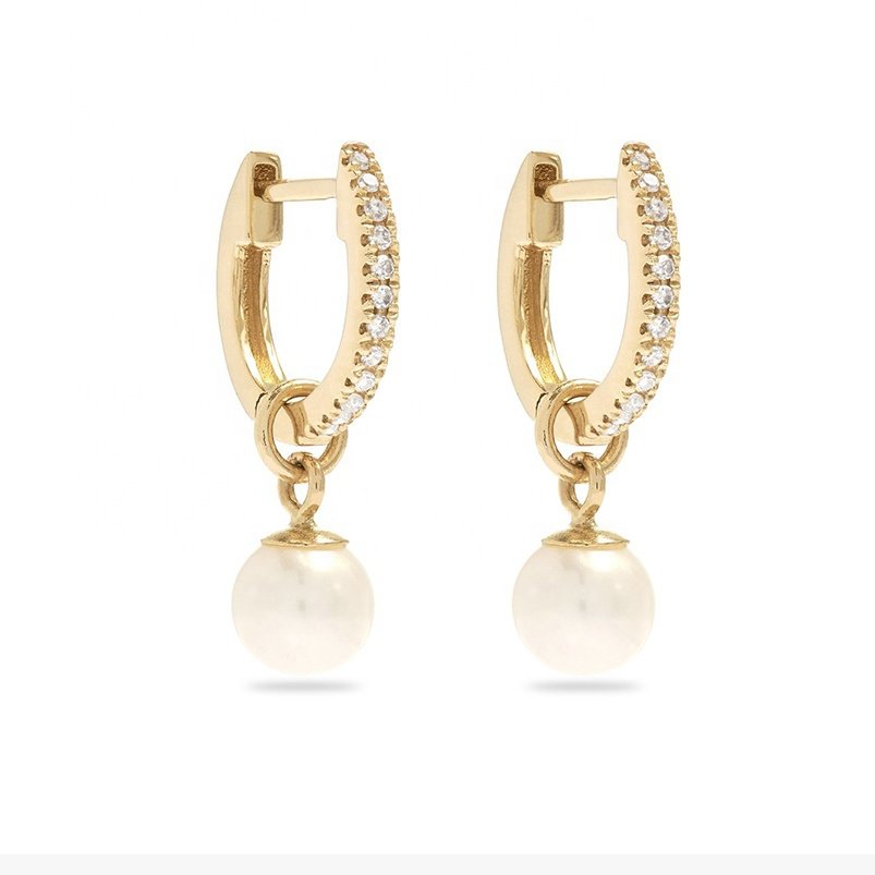 Earring Huggies Sweetpearl - bezet met zirkonium steentjes en verwijderbare parel.